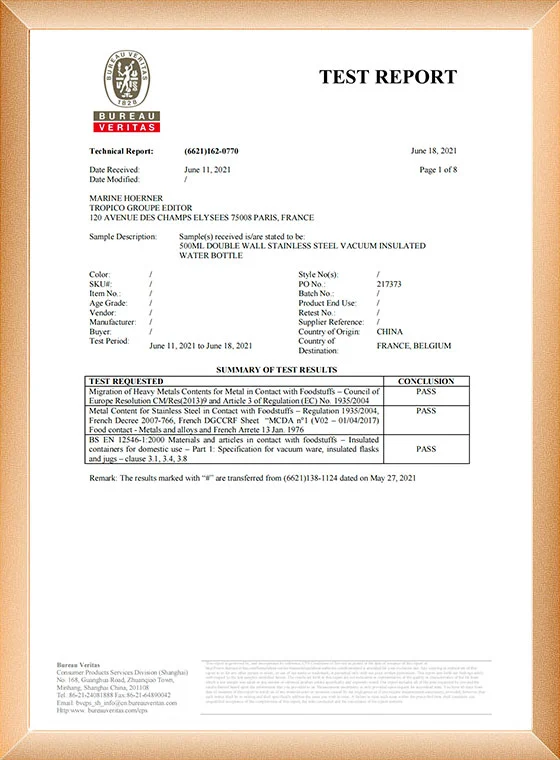 当社には独立した研究開発チームがあり、独立した特許取得済みのステンレス製魔法瓶カップを備えています。工場はBSCI検査と認証に合格しています。