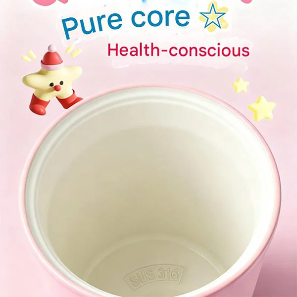 カップ内のステンレススチールのリサイクルアイコンは、クエンチャー魔法瓶が持続可能な素材で作られていることを示しています