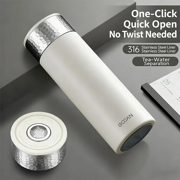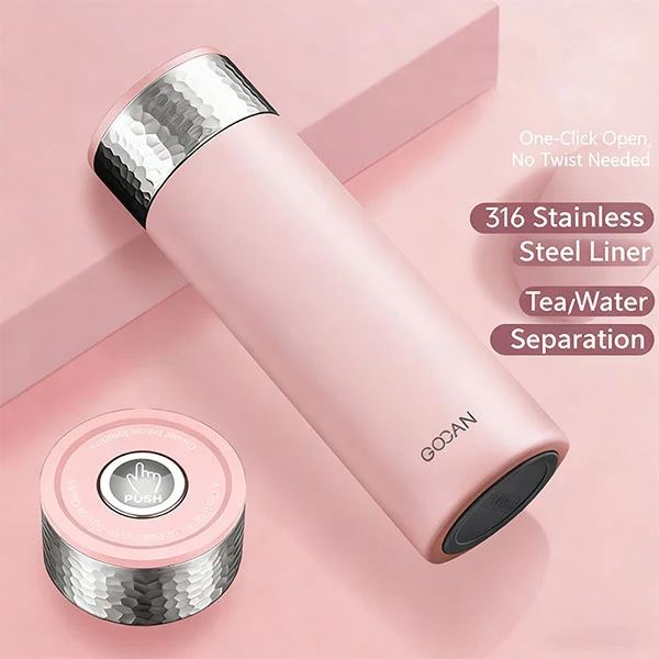 二重壁で真空断熱されており、内側は316ステンレス鋼で、抗菌効果が高く、元素の放出が少ないです。外壁は、伝統的な食品グレードの素材である 304 ステンレス鋼です。
