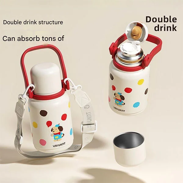 食器洗い機対応の魔法瓶には大きなハンドルとショルダーストラップが付いており、子供や大人が手を持ち上げて解放するのに適しています。蓋はウォーターカップとしても使えます
