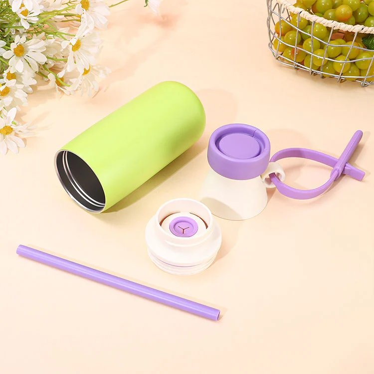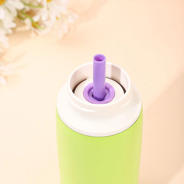 100%漏れ防止フリップスポーツカバー、取り外し可能なステンレススチール製ストロー付き